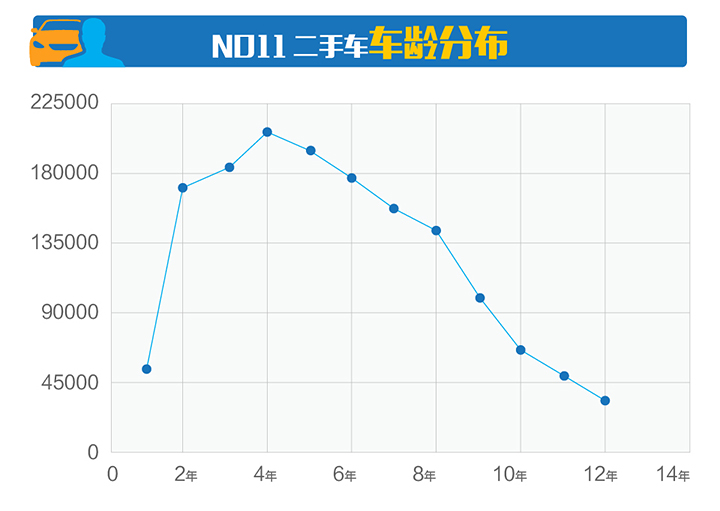 从公平价历来大数据观察,网络发布的二手车中主流车龄集中在3-5年内的。超过4年的二手车发车量随着车龄增大而逐渐下降。说明过小和过老的车源都不是二手车市场交易中的主流。1-5年的二手车车源占比50.27%,超过一半,二手车有趋于年轻化势头。