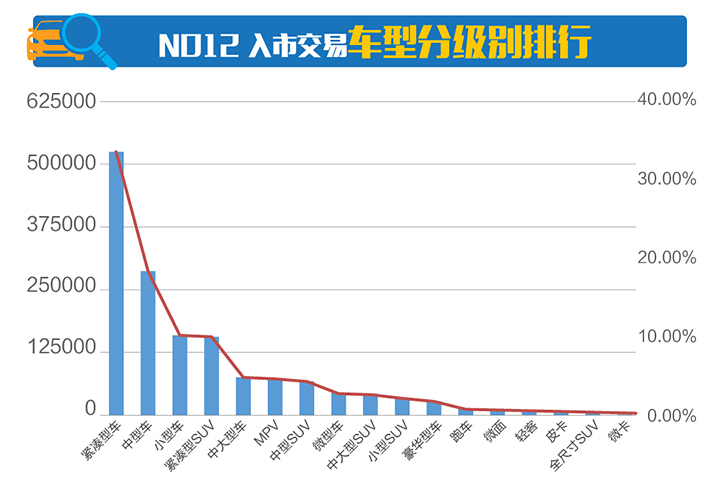 从公平价历来大数据看,车型分级别车源排行无任何变化,本月入市交易车型以紧凑型车、中型车、小型车、紧凑型SUV为主,占比71.13%,环比下降0.15%。