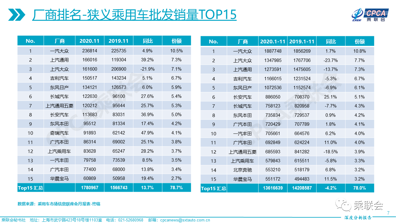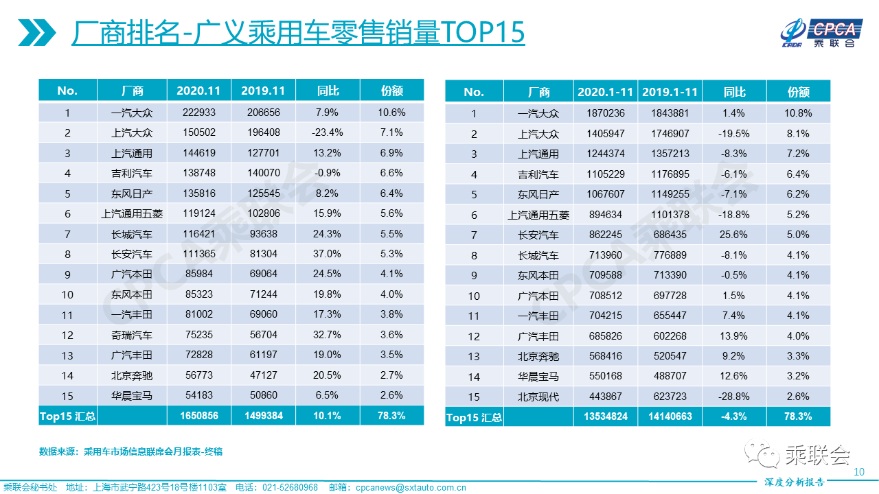 作者:协会发布 | 2020年11月份全国乘用车市场深度分析报告