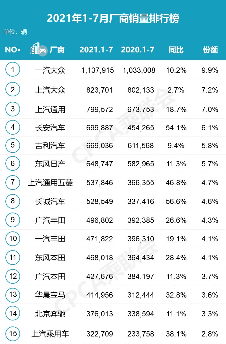 据中国汽车流通协会汽车市场研究分会(乘联会)最新零售销量数据统计,7月份国内狭义乘用车市场销量达150.0万辆,同比下降6.2%,环比下降4.9%;1-7月份累计销量1144.5万辆,同比增长22.9%。