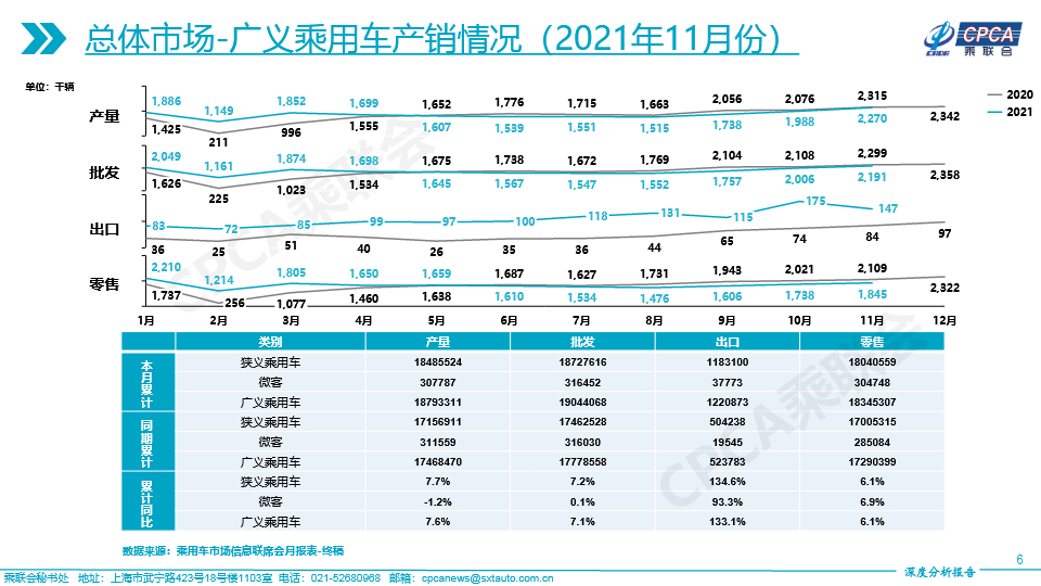 (含狭义乘用车产销情况、广义乘用车产销情况——2021年11月及累计)