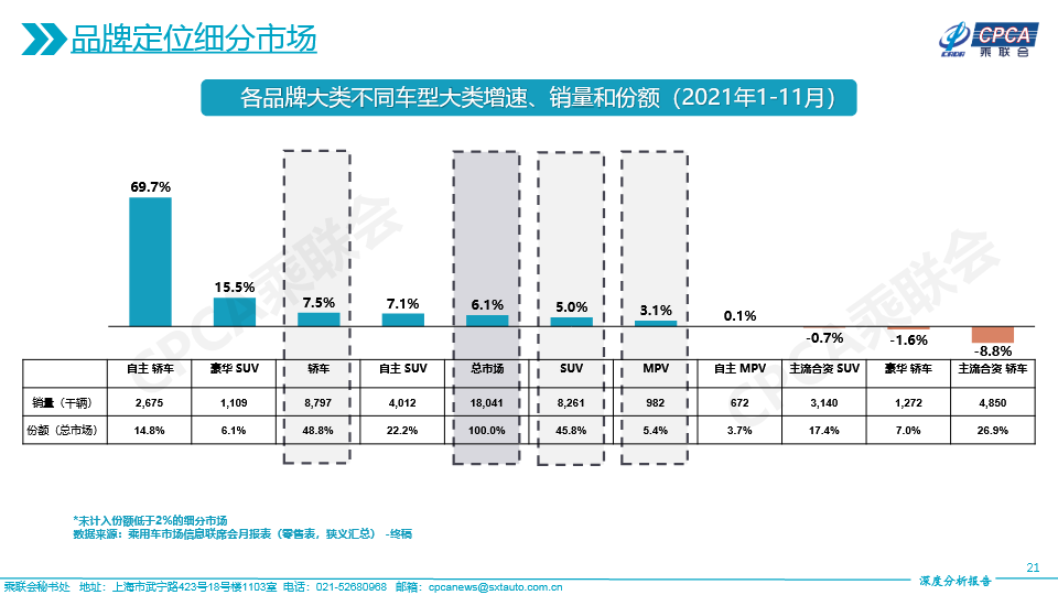 (含各品牌大类市场份额变化及各品牌大类下不同车型大类增速、销量和份额——2021年11月及累计)